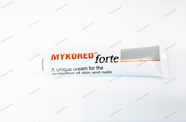 Крем Mykored Forte для інтенсивного догляду за шкірою й нігтями ніг, ефективно запобігає багатьом грибковим інфекціям. Діючі речовини алантоїн й пантенол живлять й стимулюють захисні властивості шкіри. Природній зволожуючий фактор – карбамід – підтримує гідробаланс шкіри, а випробуваний протигрибковий засіб клотрімазол перешкоджає прониканню грибкових інфекцій на шкіру й нігті. Mycored Forte оптимально підходить для догляду й захисту послабленної та схильної до грибкових захворювань шкіри.