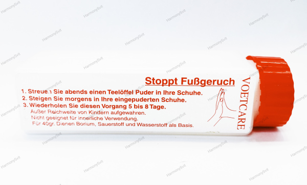 Пудра цілеспрямовано діє бактерії, які викликають неприємний запах, захищає від грибкових захворювань. Нешкідлива для взуття та одягу.